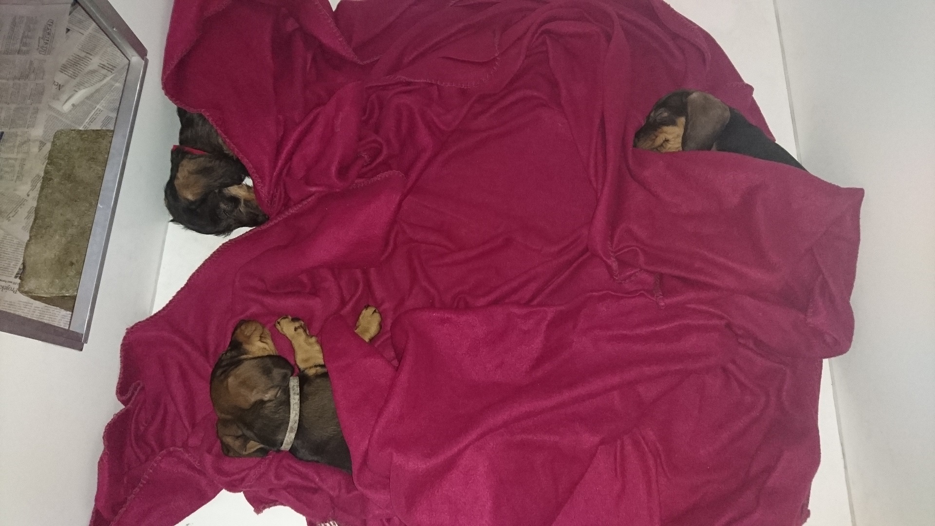 Leider war ein Rüde zu schwach und verstarb trotz Aufpäppelns noch mit knapp 2 Wochen.